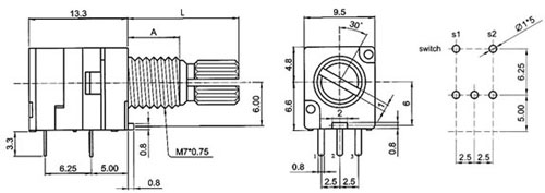9mm Pot w/Switch 1