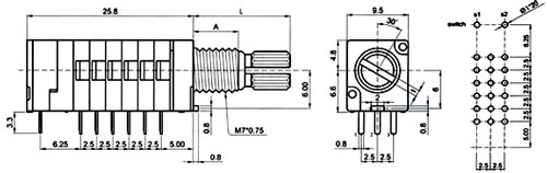 9mm Pot w/Switch 6